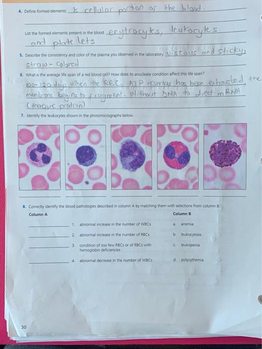 Solved 430 Review Sheet 29 4 Define Formed Elements List Chegg Com